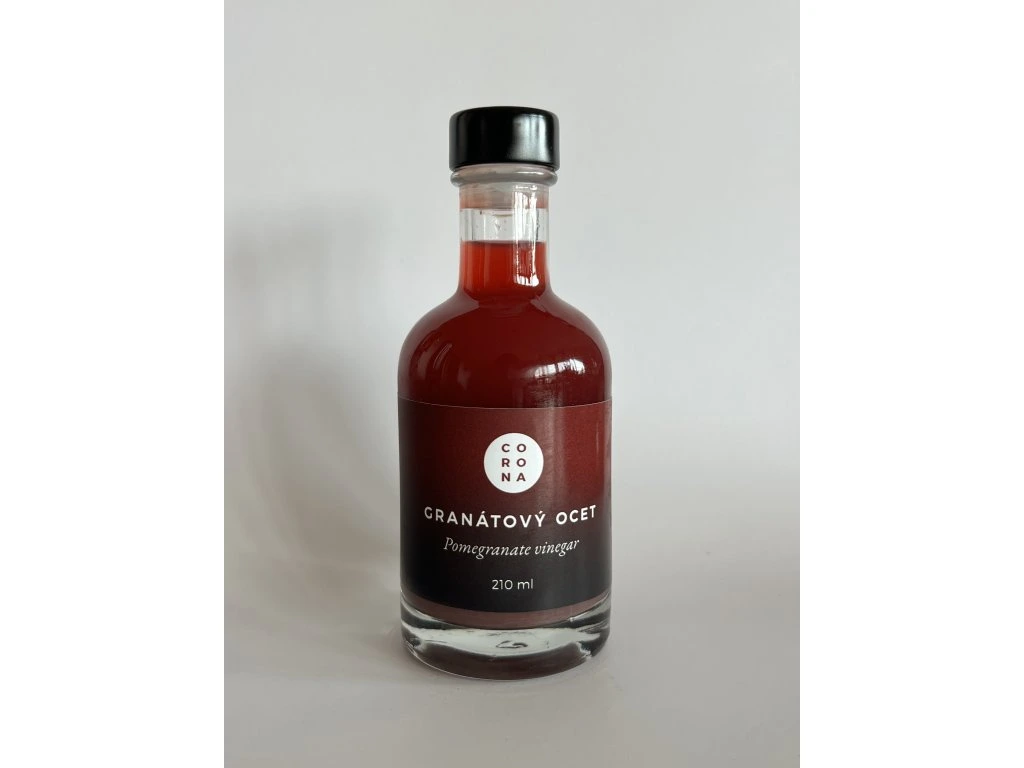 Ocet z granátového jablka je výrazná a osvěžující specialita, ve které se přirozená sladkokyselá chuť granátového jablka harmonicky snoubí s jemnou kyselinkou vinného octa. Vysoký podíl ovoce dodává octu intenzivní ovocný charakter a příjemnou svěžest. Lehké doslazení cukrem chuť zjemňuje a vytváří vyváženou rovnováhu mezi kyselostí a přirozenou ovocnou sladkostí. Výsledkem je aromatický ocet s plnou ovocnou chutí a příjemně svěžím dozvukem.
